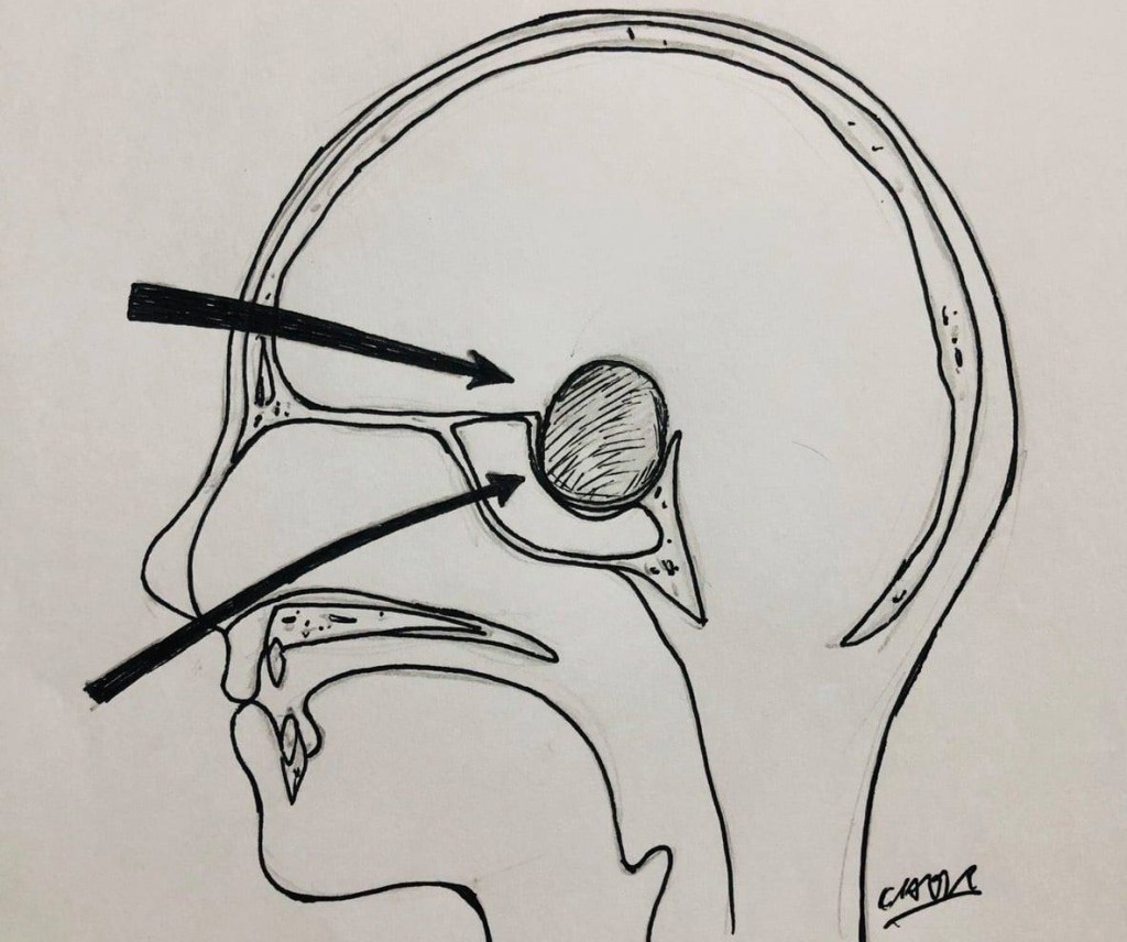 2. ผ่านทางโพรงอากาศสฟีนอยด์ (sphenoid sinus) ซึ่งเป็นช่องทางตามธรรมชาติของทางเดินหายใจทำให้สามารถเข้าไปหาเนื้องอกได้โดยตรงและไม่ต้องมีการดึงรั้งเนื้อสมอง ทำให้การผ่าตัดแบบนี้มีความปลอดภัยมากและเป็นที่นิยมในปัจจุบัน การผ่าตัดนี้ยังแบ่งออกได้อีกเป็น 2 วิธีย่อยๆ